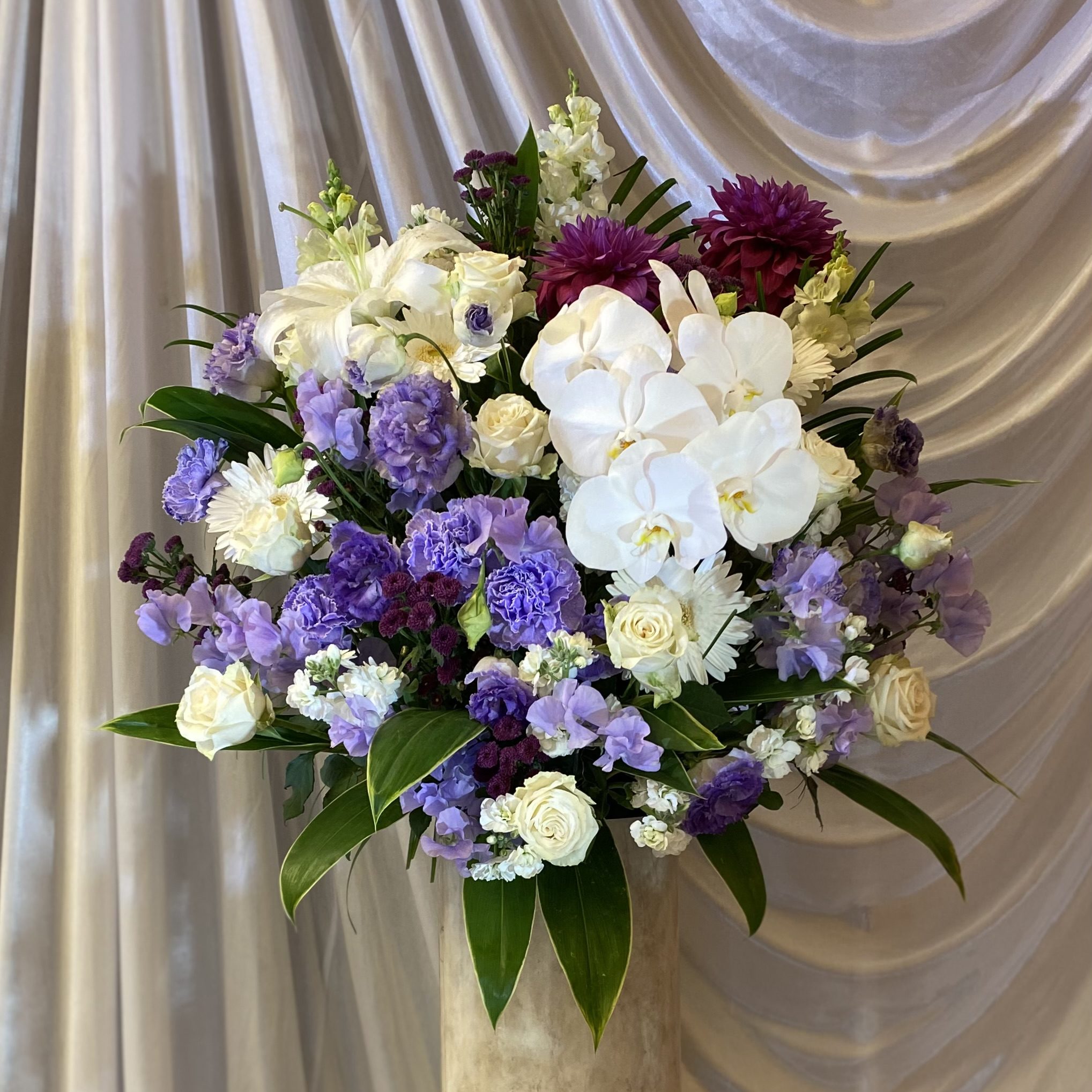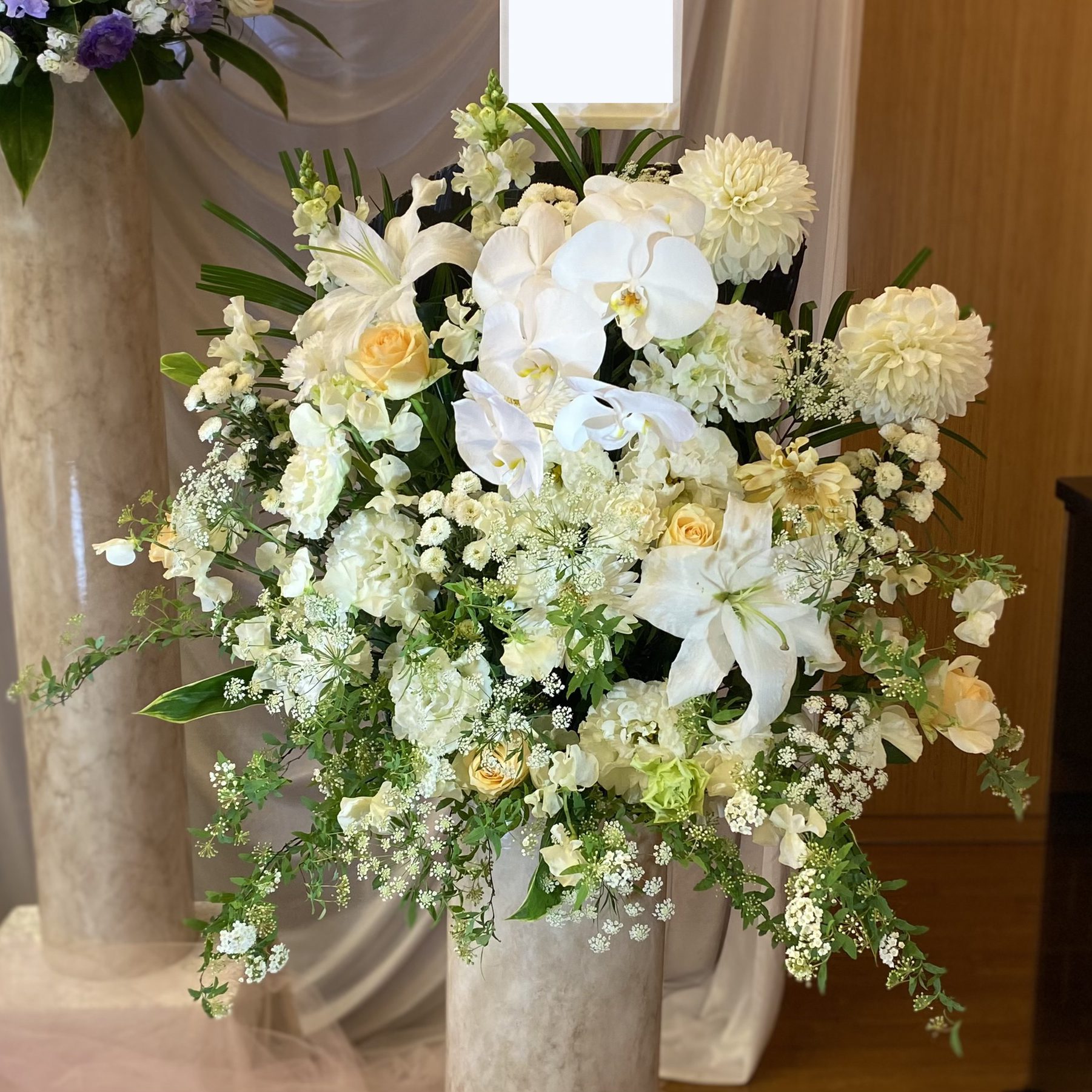 故人を偲び、お供えするご供花。色合いやデザインは、ご家族様のご要望や生花祭壇の雰囲気に合わせて作成させていただきます。